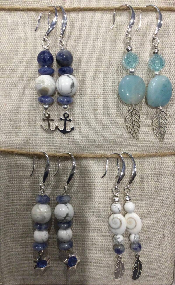 Tout le matériel, les perles, les fermoirs, les fils sont fournis. Support boucles et tiges et pampilles en argent 925 ou acier inoxydable. Accompagnement personnalisé.