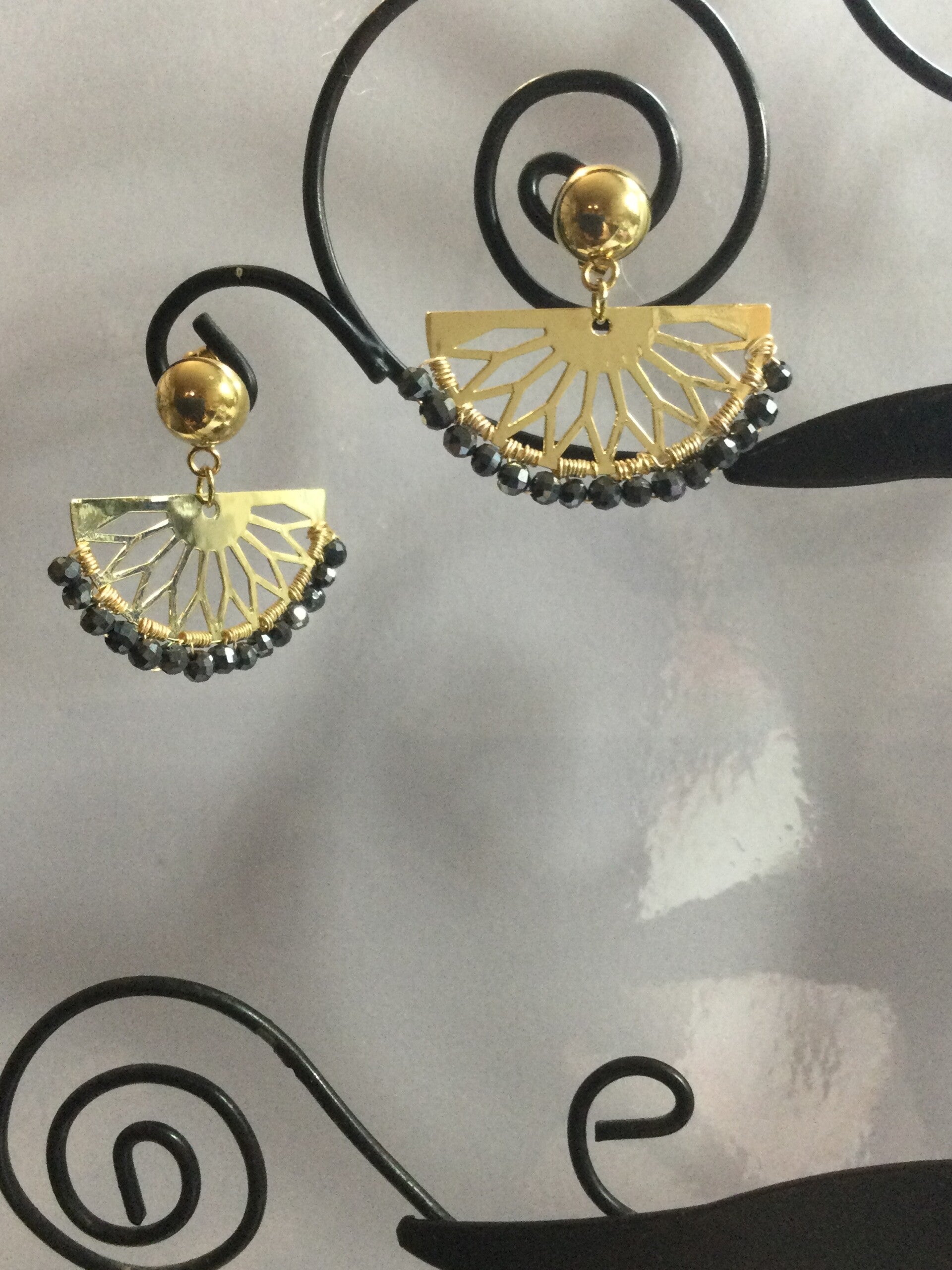 Superbes boucles d'oreilles : La couleur sombre est non seulement captivante, mais leur apporte une grande élégance. Ces boucles d'oreilles éventail agrémentées de perles enroulées de fil sont le point de rencontre entre l'art des pierres précieuses et une délicate féminité.